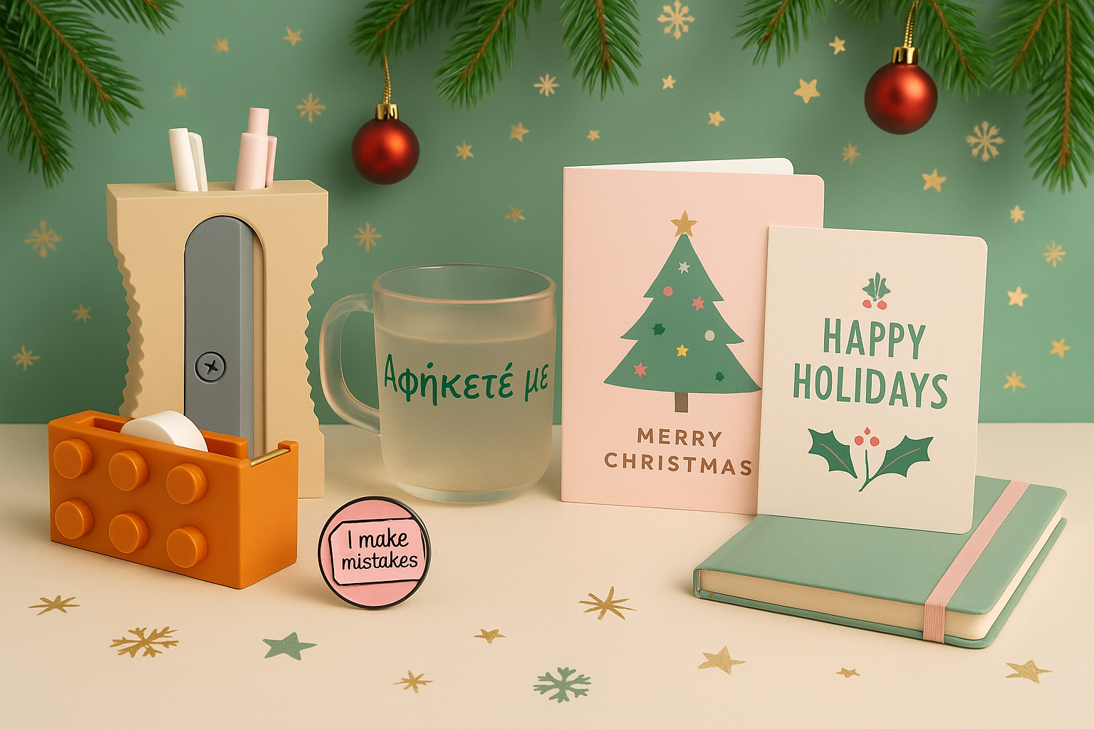 Μικρές λεπτομέρειες που κάνουν τα πάντα πιο όμορφα: κούπες, κονκάρδες και διακοσμητικά που φτιάχνουν διάθεση.