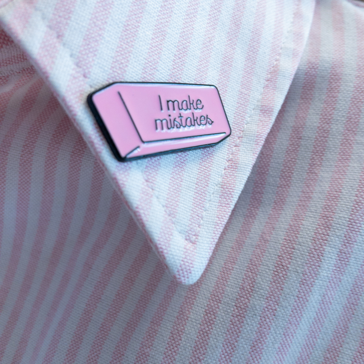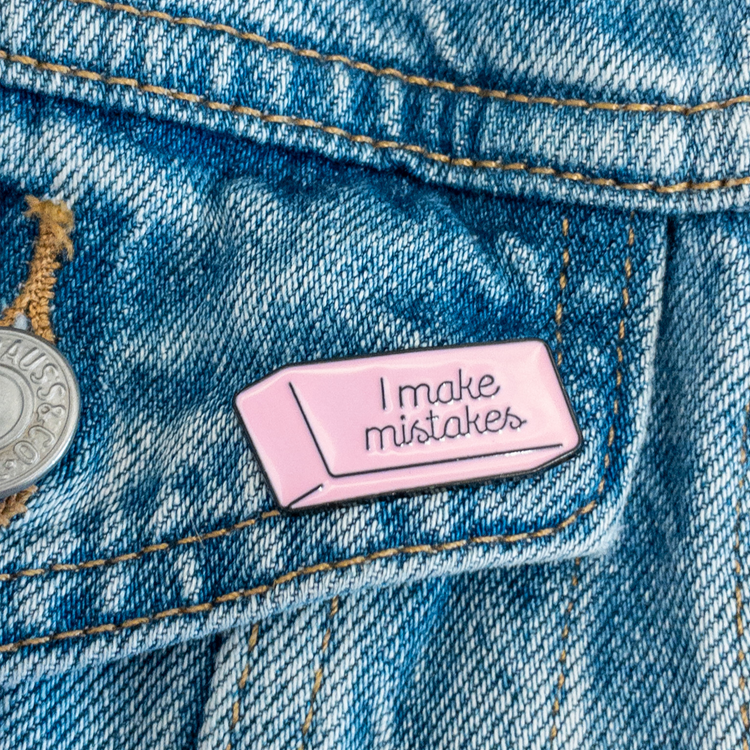 Όλοι κάνουμε λάθη, αλλά αυτή η κονκάρδα μας υπενθυμίζει να τα αγκαλιάζουμε με στυλ και χαμόγελο. Με διαστάσεις 1,3 cm x 3 cm, είναι ιδανική για να προσθέσει μια παιχνιδιάρικη πινελιά στο ντύσιμό σας.
