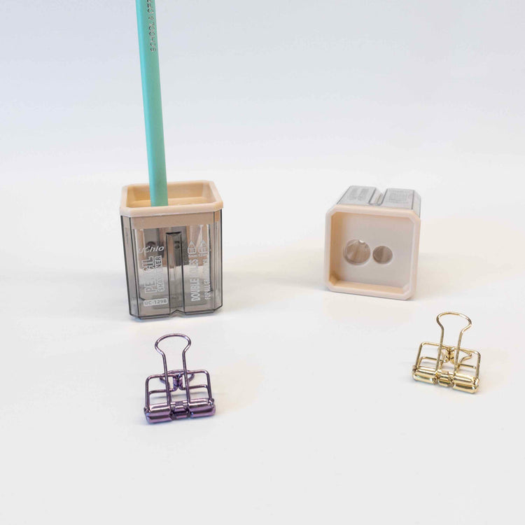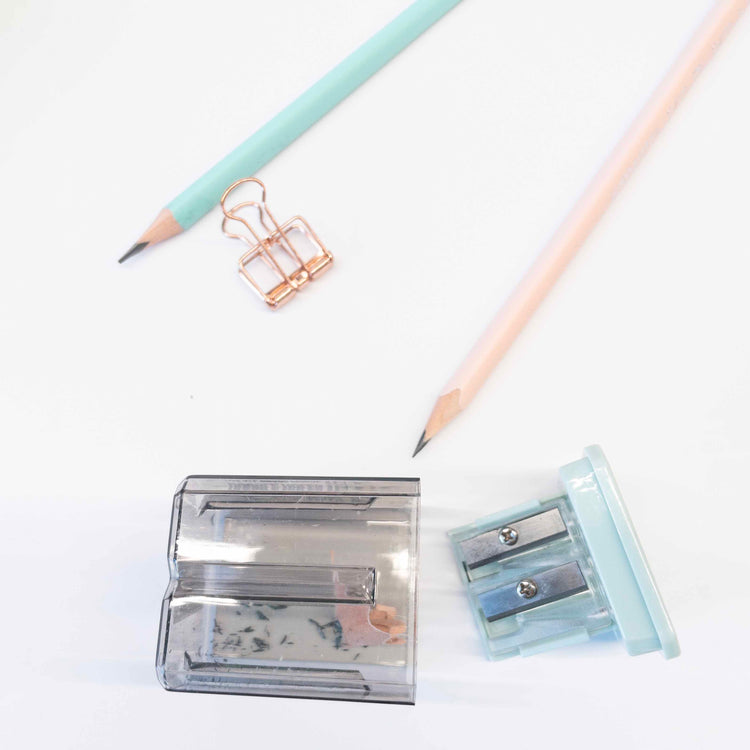 Αυτή η διπλή βολική ξύστρα βαρελάκι σε πρακτικό μέγεθος και τέσσερα cool παστέλ χρώματα αποτελεί μια απαραίτητη προσθήκη στο γραφείο ή τη μολυβοθήκη σας. Είναι κατάλληλη για μολύβια και ξυλομπογιές.