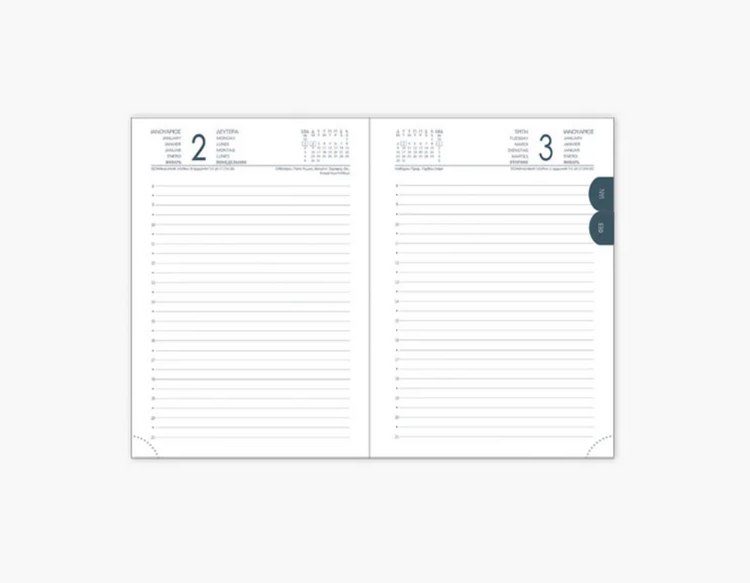 - Σελίδες σημειώσεων & τηλ. Ευρετηρίου στο τέλος του ημερολογίου
