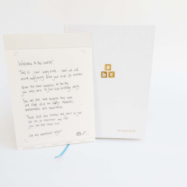 Με αυτό το κομψό baby book θα μπορέσετε να κρατήσετε για πάντα τις αναμνήσεις του παιδιού σας από τα 3 πρώτα του χρόνια. Είναι ένα ημερολόγιο και λεύκωμα για να καταγράψετε τις ιδιαίτερες στιγμές των πρώτων ημερών του μωρού.