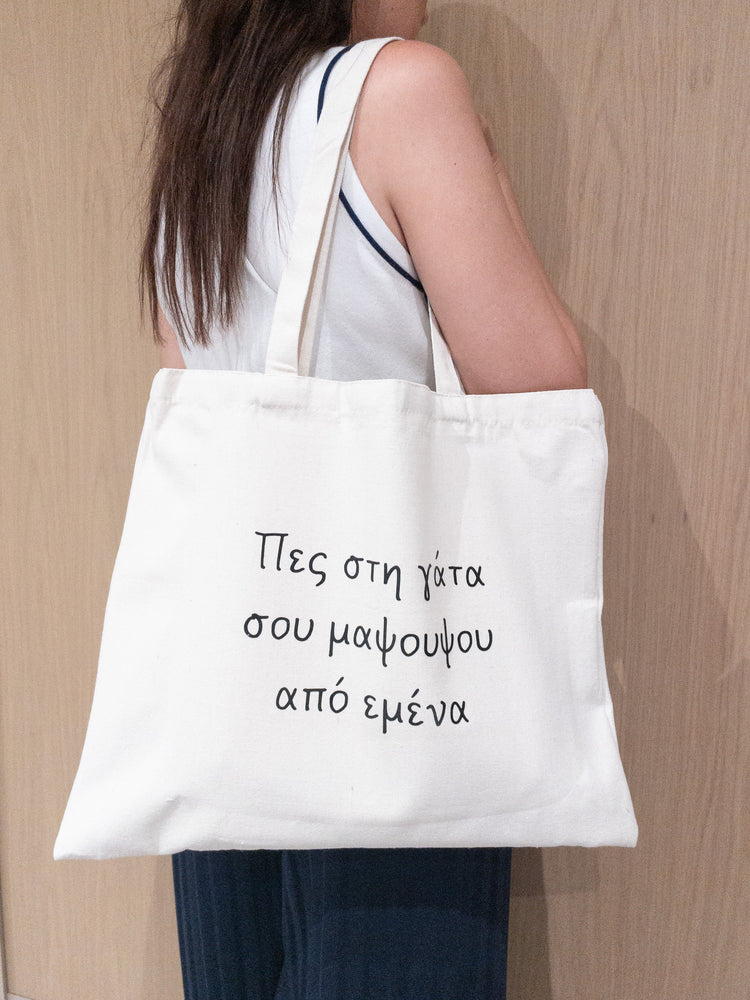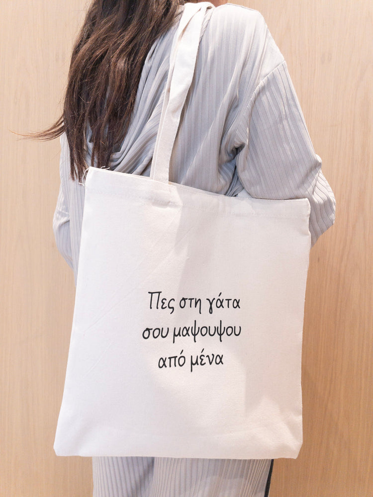 Επιλέξτε την τσάντα "Πες στη Γάτα σου Μαψουψου" για ένα πρακτικό και ταυτόχρονα διασκεδαστικό αξεσουάρ που θα σας συνοδεύει σε κάθε σας βήμα. Κάντε τις καθημερινές σας αγορές με στυλ και χιούμορ, ενώ παράλληλα προστατεύετε το περιβάλλον.
