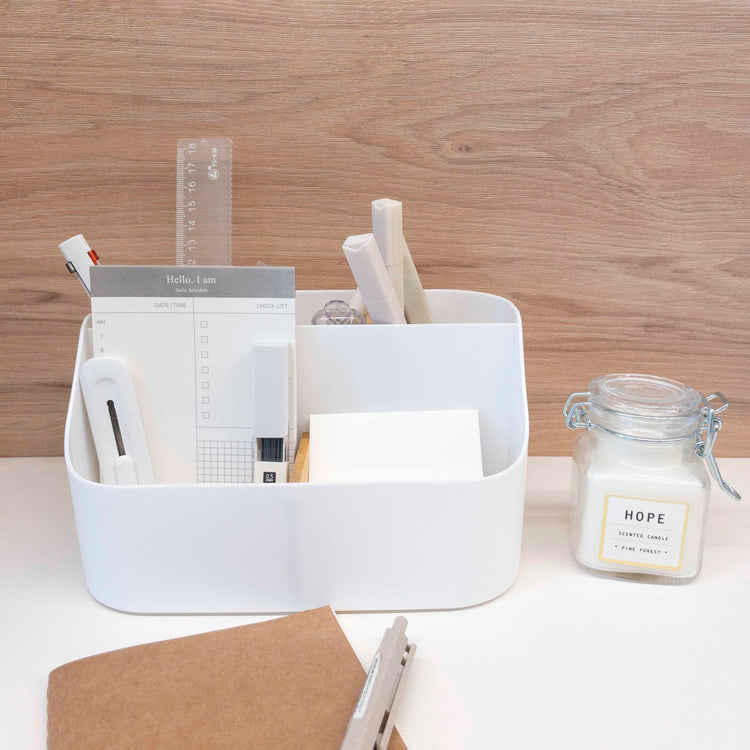 Με αυτό το λειτουργικό οrganizer γραφείου, διατηρήστε όλα τα αξεσουάρ γραφείου σας τακτοποιημένα και οργανωμένα ώστε το υπόλοιπο γραφείο σας να είναι ελεύθερο. Διαθέτει αρκετό αποθηκευτικό χώρο για να όλα τα καθημερινά μικροαντικείμενά σας στο σπίτι, στο σχολείο και στο γραφείο. Αποτελείται από δύο μεγαλύτερες θήκες και 3 μικρότερες.