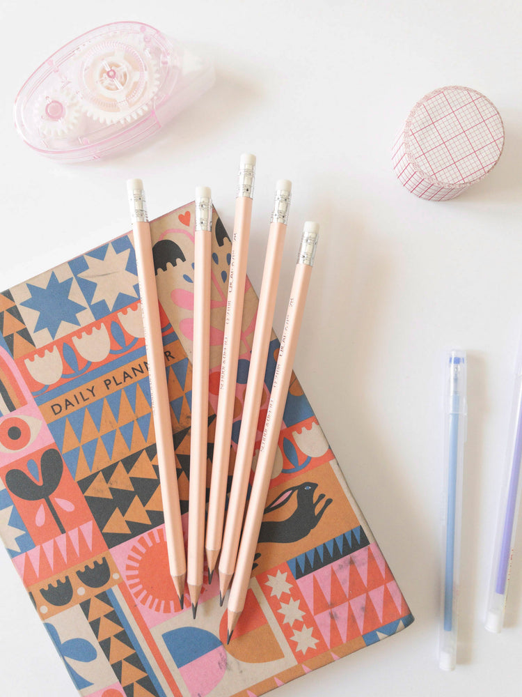 Το μολύβι είναι ένα από τα πιο σημαντικά εργαλεία για το γραφείο ή το σχολείο. Θα εκπλαγείτε από το πόσες εργασίες απαιτούν γραφή ή σχέδιο, και όταν έρθει αυτή η ώρα, θα χρειαστείτε το μολύβι μας! Διαθέτει ανθεκτική μύτη 2B και διατίθεται σε τέσσερα παστέλ χρώματα, ώστε να μπορείτε να γράφετε με στυλ. Το σετ αποτελείται από 5 τεμάχια του ίδιου χρώματος.
