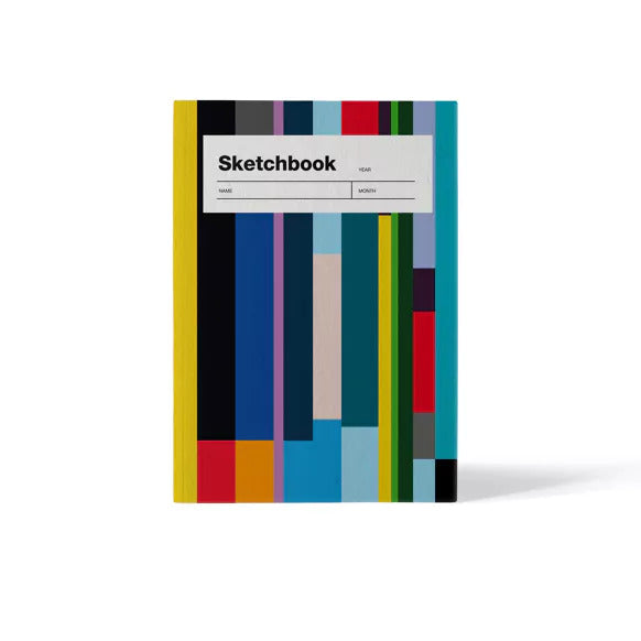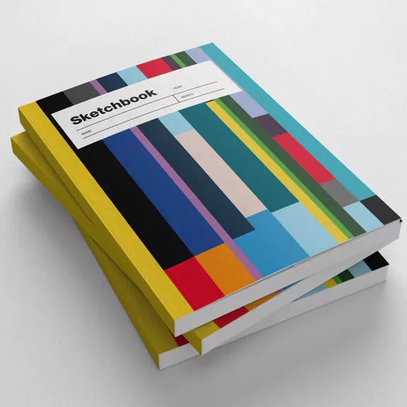 Ένα γεωμετρικό σχέδιο σε έντονα χρώματα χαρακτηρίζει το εξώφυλλο αυτού του σημειωματάριου μεγέθους Α5 με λευκά εσωτερικά φύλλα.