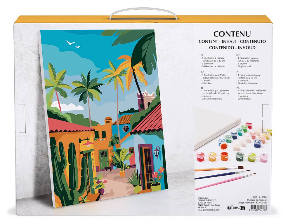 Το σετ “Mexican Village” σε προσκαλεί να ζωντανέψεις στον καμβά την αυθεντική ατμόσφαιρα της Λατινικής Αμερικής — με τα σπίτια, τα σοκάκια και τη ζωντανή ενέργεια του ήλιου. Ακολούθησε τους αριθμούς, χαλάρωσε και δημιούργησε ένα έργο που θα φέρει το καλοκαίρι στο σπίτι σου.