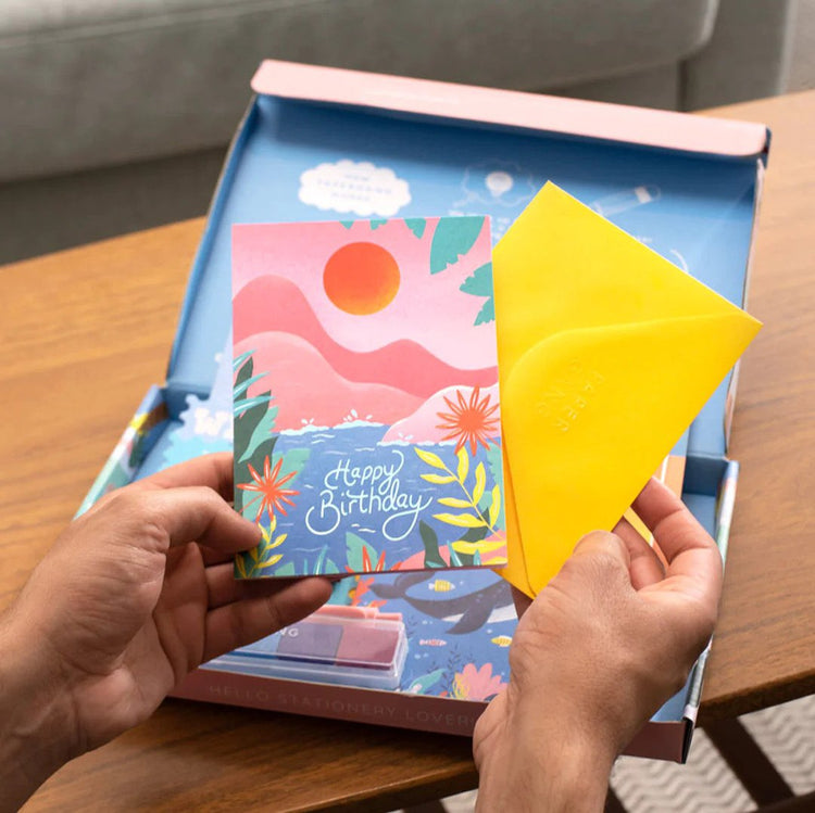 Αυτό το Stationery Box έχει σχεδιαστεί από την εικονογράφο Alice Oliver. Εμπνεύστηκε από την αγάπη για το καλοκαίρι, το να είναι στην παραλία και να βλέπει όλα τα πλάσματα στην ακτή.